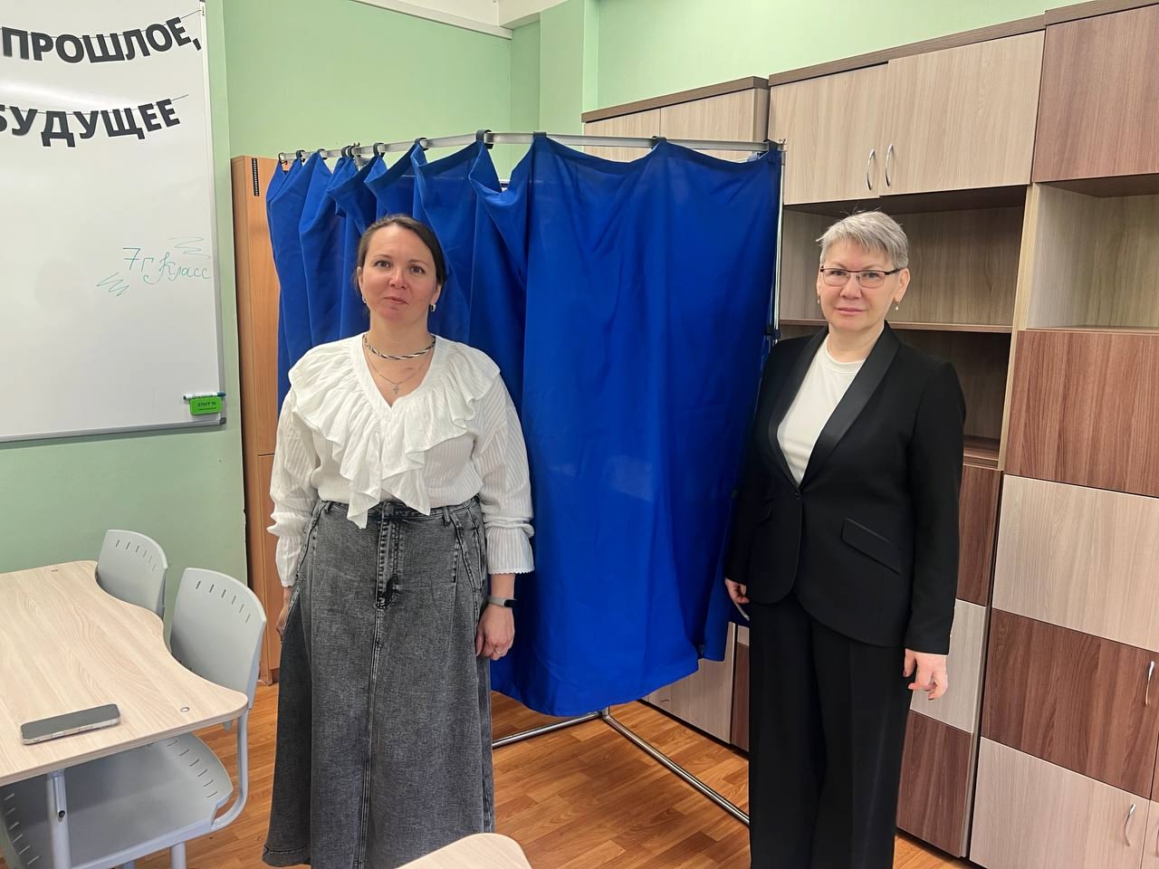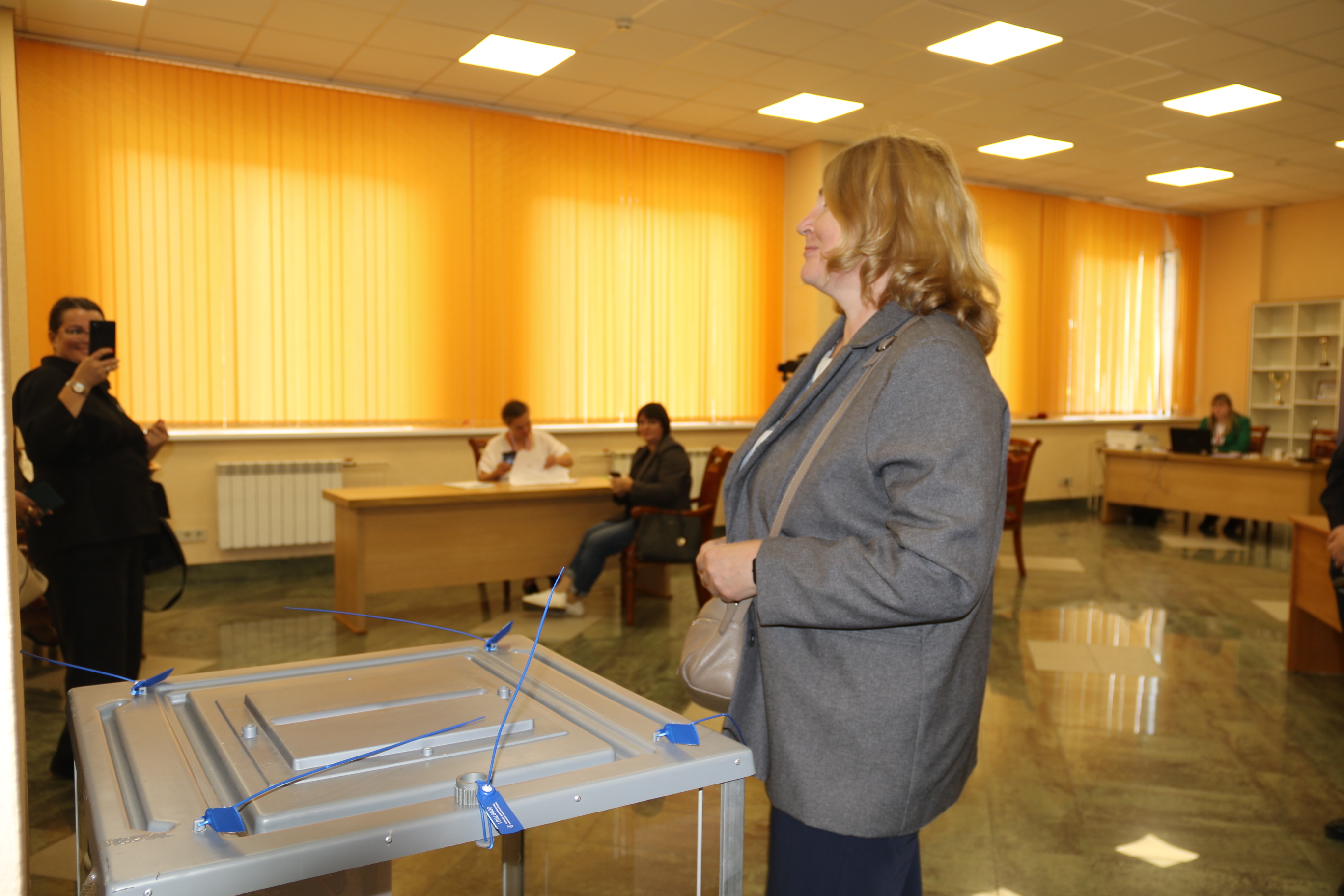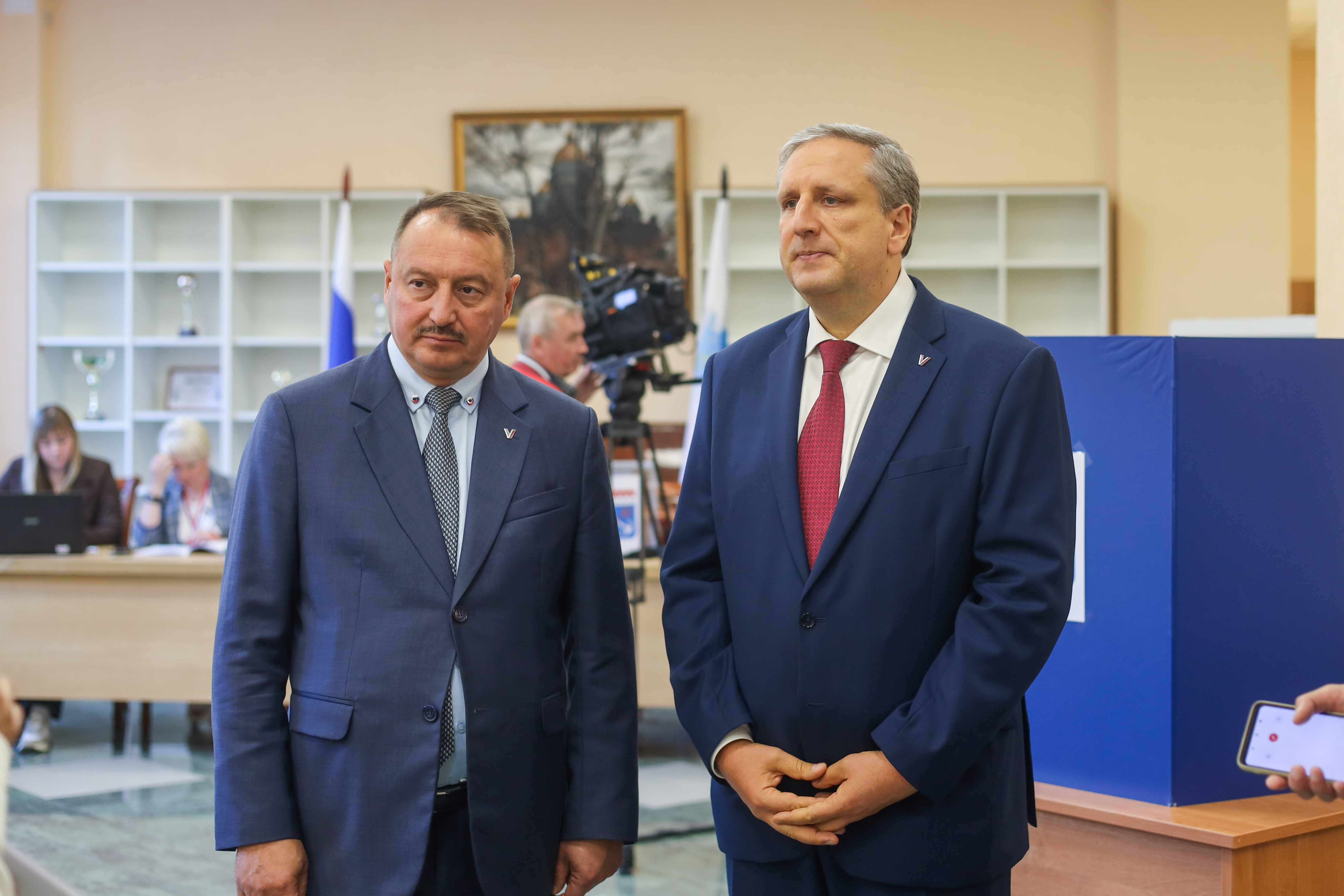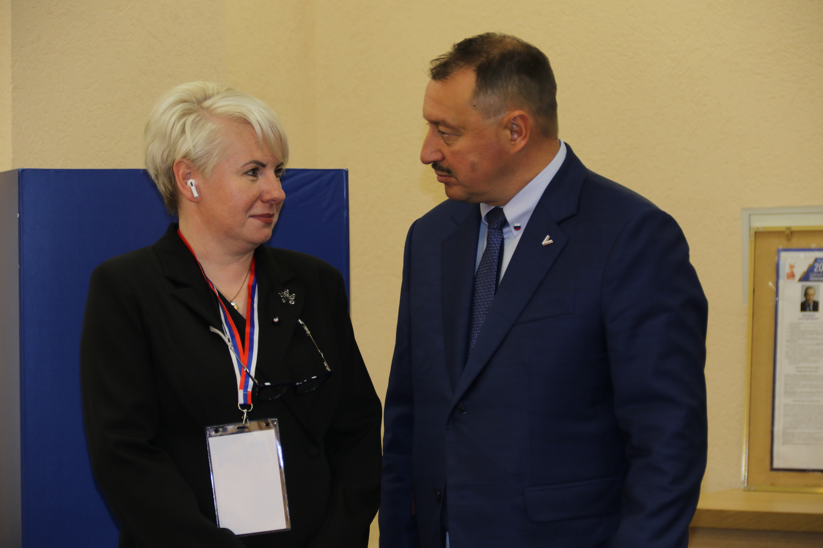 М.Лебединский и М.Мейксин высоко оценили оформление помещения для голосования, пообщались с членами участковой избирательной комиссии, ответили на вопросы журналистов.